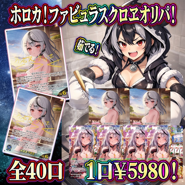 トレカレンジャーと申します! 数あるショップの中からご閲覧して頂きありがとうございますm(_ _)m ●価格 5980円 ●総口数 40P ●当たり枠 沙花叉クロヱSEC 1 沙花叉クロヱOUR 2 沙花叉クロヱUR 4 ●最低保証 クロヱOSR or クロヱSR! ●購入制限 なし! ●作成日 1/28 イタズラ購入者は今後当店での購入をお断りさせていただきます。 商品購入後のお客様都合のキャンセルは受け付けておりません。 お問合せいただいてもご対応することはできませんのであらかじめご了承の上お買い求めください。 全てのパックが売り切れ次第終了とさせていただきます。 ご希望のパック数を購入出来ない場合もございますのでご了承ください。 【注意事項】 当店はオリジナルパック専門店ですので 商品の性質上あたりハズレがございます。 ご理解していただいた上でご購入してください。 カード内容での評価をされる方は購入をお控えください。 比較的状態の良好を採用しておりますが、 カードの中には初期キズ、キズありカードがある場合もございます。 中古であることをご了承の上、購入お願い致します。 プレイ用としてお考え下さい。 表記のレアリティ、販売価格は 当店の基準にさせていただきます。 他店の販売価格と多少の誤差があることをあらかじめご了承の上、お買い求めください。 ヴァイスシュヴァルツはカードショップ セラや遊々亭などを参考にしております。 オリパイベントは告知なしにいきなり 終了する場合があります、ご了承ください。 各商品予告なしに補充 (キャンセル分等) または終了することがございます。 ご利用お客様の情報ミスなどで 郵便出荷発送事故が発生した 場合こちらでは保証致しかねます。 ※原則営業日より5営業日以内に配送していますが 大型連休、災害等で配送が 遅くなる場合もございます。 ※ご購入お支払い後原則として キャンセル受け付けをしていません。 お客様都合でのご購入後の返金は致しかねます。 ※発送後のトラブルに関しては当店では一切責任を負いません。 当商品をご購入頂いた方は、 注意事項を全て確認し 内容に同意頂いたと判断させていただきます