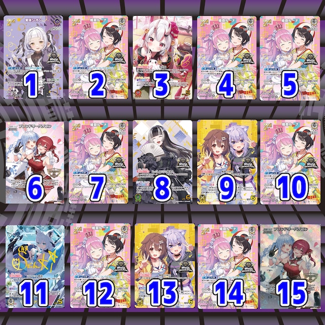トレカレンジャーと申します! 数あるショップの中からご閲覧して頂きありがとうございますm(_ _)m ●価格 115000円 ●総口数 15P ●当たり枠 1 WorldGrandPrix紫咲シオン 2 WorldGrandPrix姫森ルーナ 3 百鬼あやめSEC 4 WorldGrandPrix姫森ルーナ 5 WorldGrandPrix姫森ルーナ 6 フレンドリーパソコン 7 WorldGrandPrix姫森ルーナ 8 WorldGrandPrix儒烏風亭らでん 9 WorldGrandPrix戌神ころね 10 WorldGrandPrix姫森ルーナ 11 白上フブキSEC 12 WorldGrandPrix姫森ルーナ 13 フレンドリーパソコン 14 WorldGrandPrix姫森ルーナ 15 WorldGrandPrix戌神ころね ●購入制限 一人1つ イタズラ購入者は今後当店での購入をお断りさせていただきます。 商品購入後のお客様都合のキャンセルは受け付けておりません。 お問合せいただいてもご対応することはできませんのであらかじめご了承の上お買い求めください。 BOTでの購入はキャンセルさせていただきます。 全てのパックが売り切れ次第終了とさせていただきます。 ご希望のパック数を購入出来ない場合もございますのでご了承ください。 【注意事項】 当店はオリジナルパック専門店ですので 商品の性質上あたりハズレがございます。 ご理解していただいた上でご購入してください。 カード内容での評価をされる方は購入をお控えください。 比較的状態の良好を採用しておりますが、 カードの中には初期キズ、キズありカードがある場合もございます。 中古であることをご了承の上、購入お願い致します。 プレイ用としてお考え下さい。 表記のレアリティ、販売価格は 当店の基準にさせていただきます。 他店の販売価格と多少の誤差があることをあらかじめご了承の上、お買い求めください。 オリパイベントは告知なしにいきなり 終了する場合があります、ご了承ください。 各商品予告なしに補充 (キャンセル分等) または終了することがございます。 ご利用お客様の情報ミスなどで 郵便出荷発送事故が発生した 場合こちらでは保証致しかねます。 ※原則営業日より5営業日以内に配送していますが 大型連休、災害等で配送が 遅くなる場合もございます。 ※ご購入お支払い後原則として キャンセル受け付けをしていません。 お客様都合でのご購入後の返金は致しかねます。 ※Amazon Payをご利用のお客様はご本人確認の連絡をする場合がございます。この連絡に出られない場合、発送を一時中断させていただきます。ご了承ください。 ※発送後のトラブルに関しては当店では一切責任を負いません。 当商品をご購入頂いた方は、 注意事項を全て確認し 内容に同意頂いたと判断させていただきます